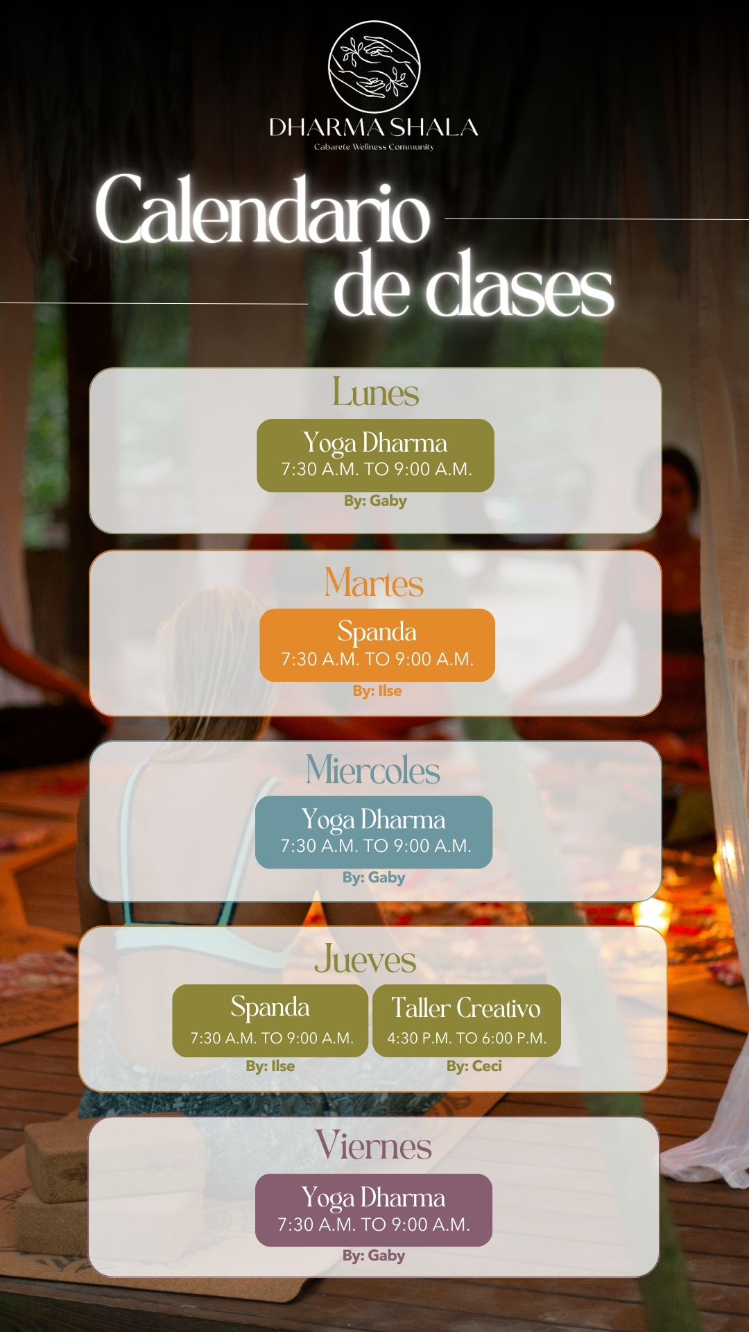 Nuestro templo, donde diferentes instructores ofrecen prácticas de yoga, meditación y disciplinas holísticas, tejiendo el hilo común y vital de nuestra comunidad.